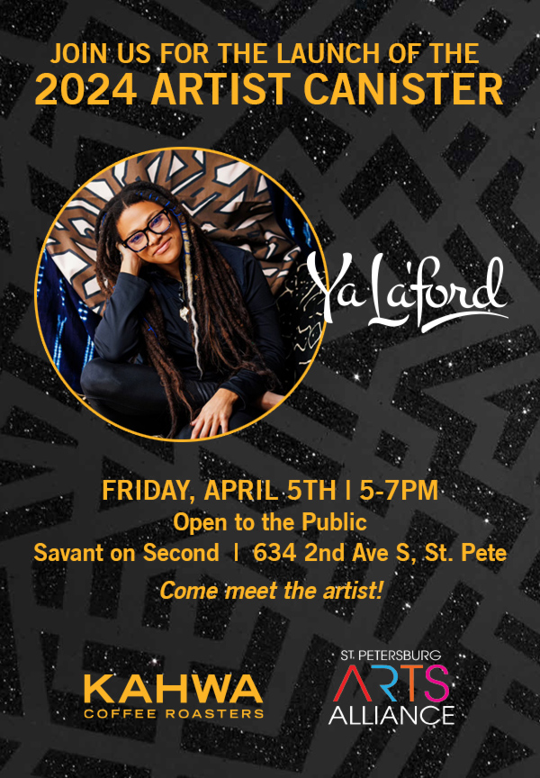 “We are thrilled to be partnering with SPAA and look forward to the future collaborations with artists in community. We are fervent supporters of the arts in St. Petersburg.” ~ Sarah Perrier, co-founder of Kahwa Coffee.